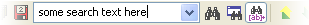 For search with help of this combobox, simply activate it (Alt+A keyboard combination), type search text into the edit field and press F3 or Enter. Also, you can toggle between normal and regular expression types of searches using toolbar button . If you wish invoke Find/Replace dialog box itself, press Ctrl+F or toolbar button .