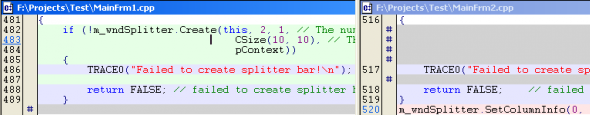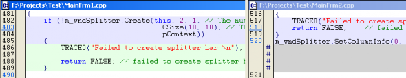 Before merging differences you can do adujsting of the similar lines in both panes. Put the caret to different area (lines number 482 - 485 in the left pane on the previous picture) and press "Alt+PageDown" or invoke context popup menu at caret position and select "Adujst similar lines" menu command. After it, similar lines will be rearranged as on the next picture below: