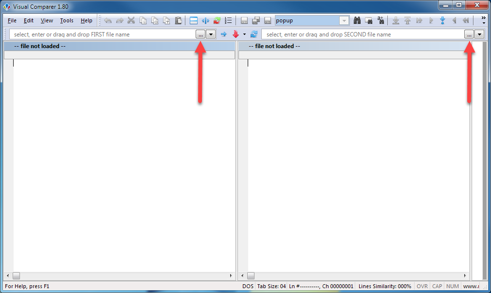 At beginning you need to select two files for comparison. Use file selector comboboxes to select appropriate source and target files.