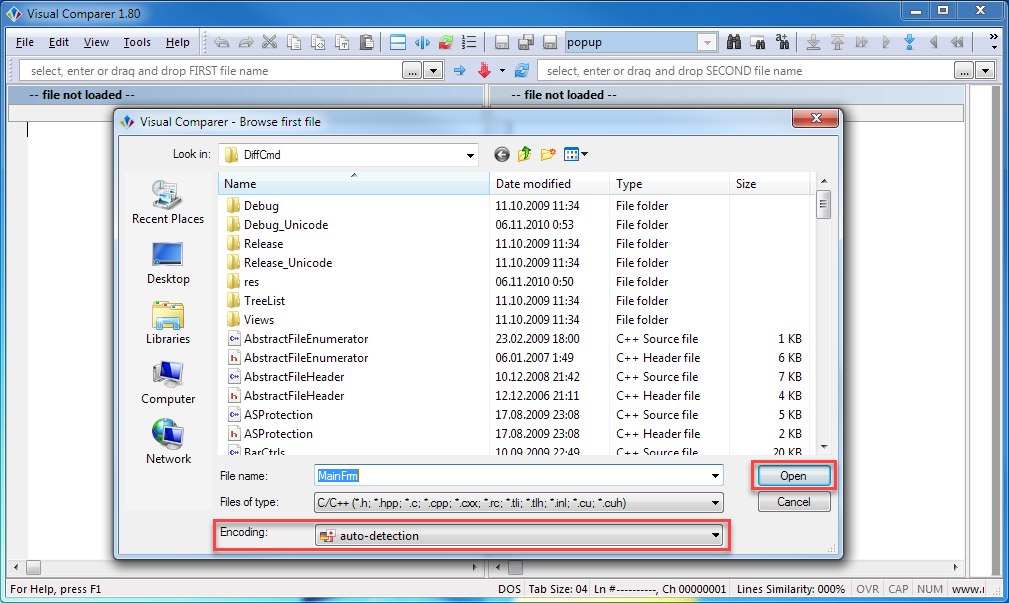 This is typical 'Open File' system dialogue. Here you can also select which code page will be used for the opening of selected file.