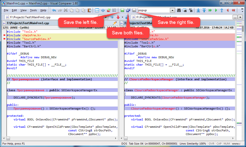 - file names in the title of the main window for easy navigation between instances of Visual Comparer;