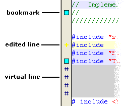 Each Comparison Pane contains margin indicators that provide visual cues to certain actions during the editing of your code. The margin indicators appear in the Margin Bar on left side of the pane: